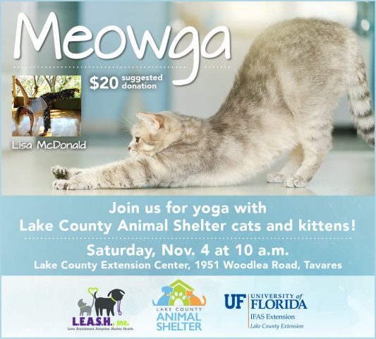 TAVARES, Fla – Join the Lake County Animal Shelter and LEASH, Inc. for “Meowga” on Saturday, Nov. 4 at 10 a.m. at the Lake County Extension Center, 1951 Woodlea Road, Tavares.